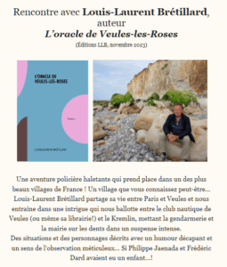 L’auteur nous invite, avec humour, à prendre les codes du polar à contre-pied le temps d’un week-end d’angoisse en huis clos à Veules-les-Roses.